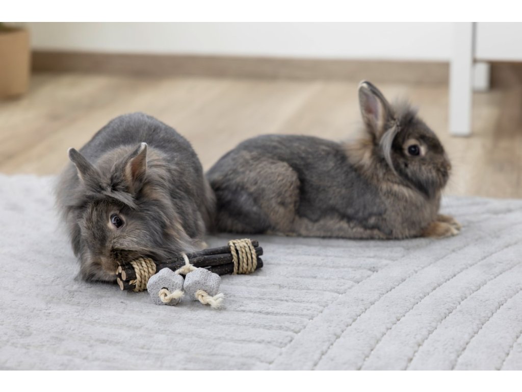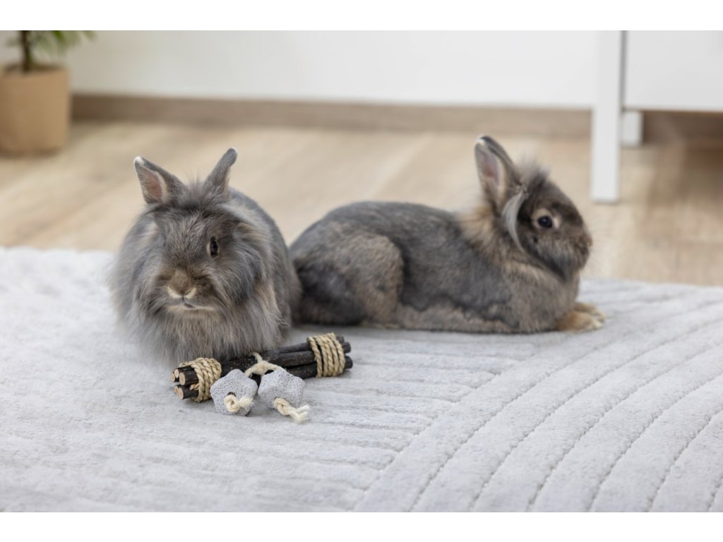 Tato hračka pro králíky a hlodavce spojuje přírodní větvičky, sisal a lávový kámen do zábavné a zdraví prospěšné formy hry.