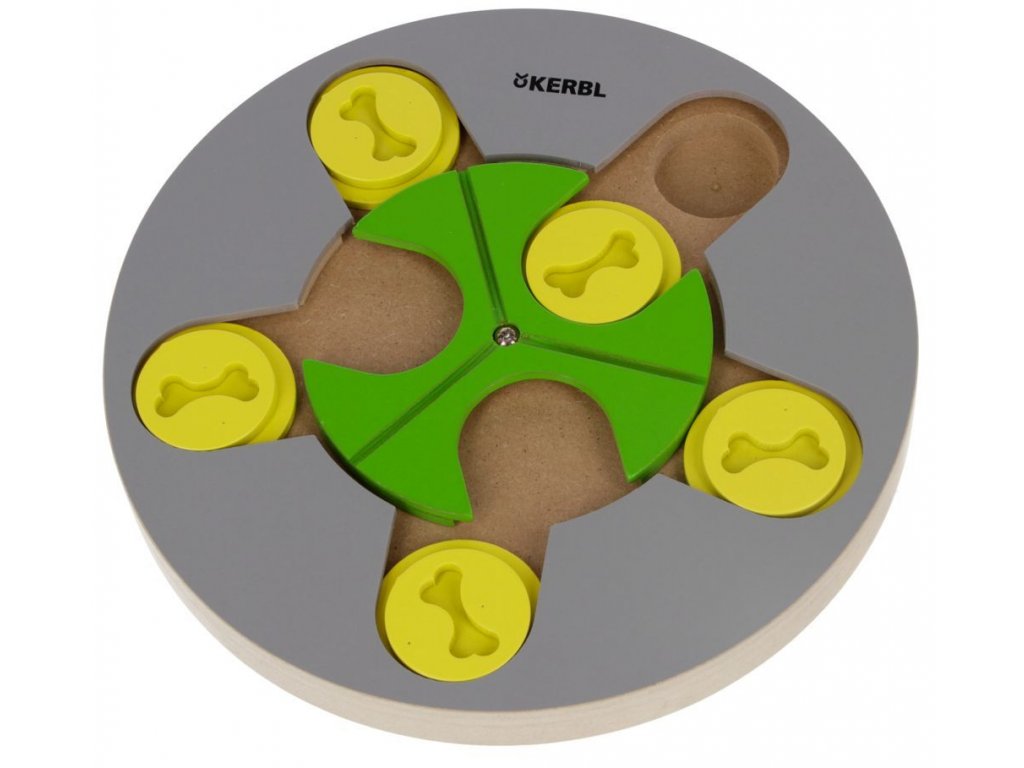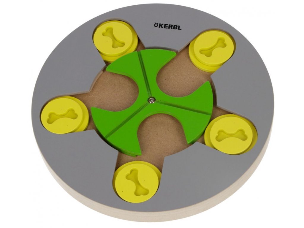 Pod vnější krytky se umístí pamlsky. Vnější část funguje na principu posuvu krytek, které musí zapadnout do vnitřního pohyblivého kruhu. Aby se pes dostal k pamlskům, musí se naučit otáček vnitřním kruhem a posouvat jednotlivými krytkami.