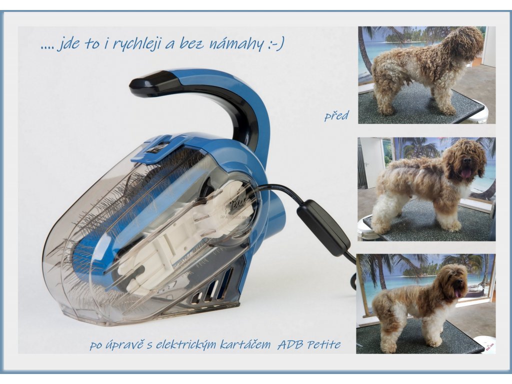 Inovativní automatický kartáč na psy kočky a velké hlodavce ADB Petite, k snadnému rozčesávání srsti. Patentovaný kartáč na srst si hravě poradí se zacuchanou a zplstnatělou srstí. Velmi tichý chod kartáče zajistí pohodu zvířete a díky tomu i snadnou a nenáročnou práci.