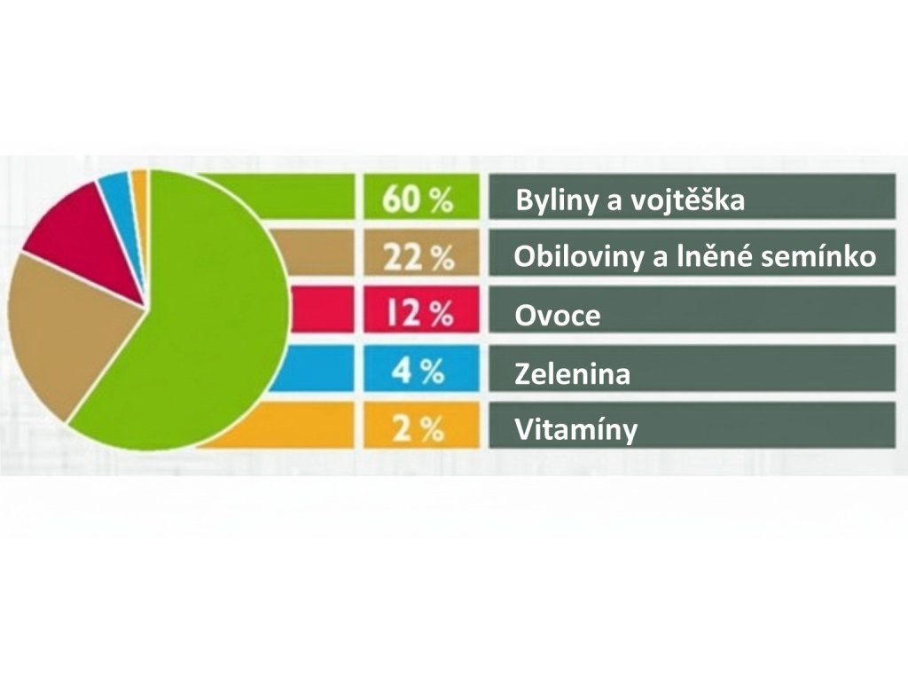 pšenice, mrkev, lněné semínko, pivovarské kvasnice, mannanoligosacharidy