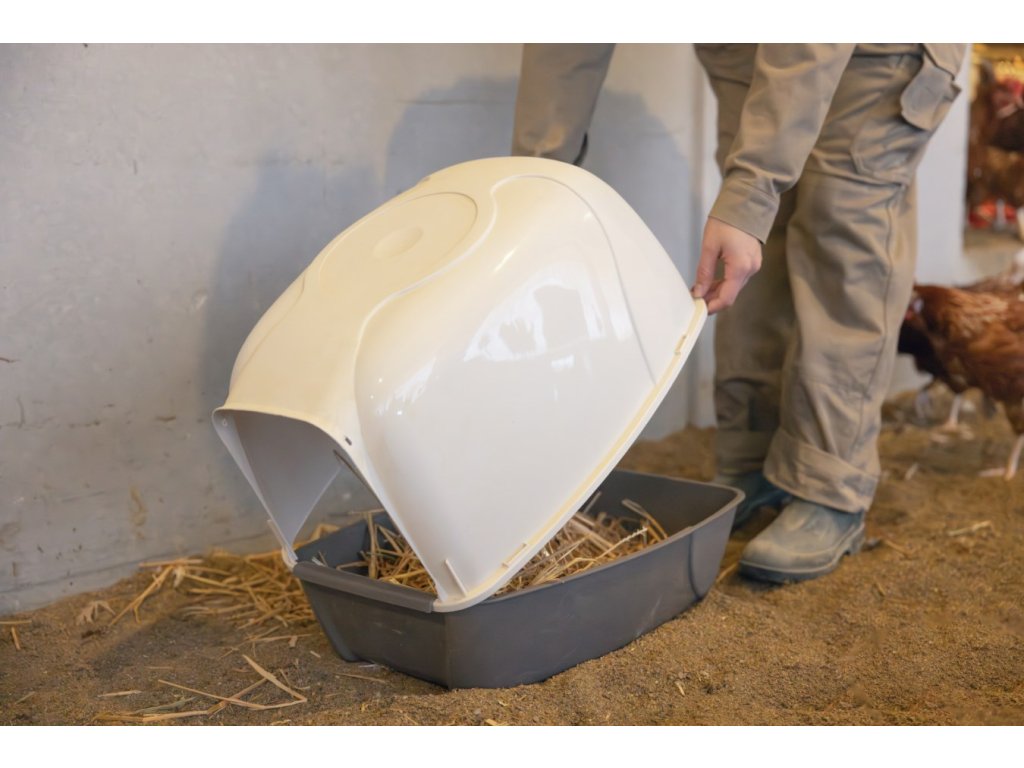 - snadné čištění – celý díl lze otevřít jednou rukou, ideální pro rychlé vyprázdnění podestýlky
