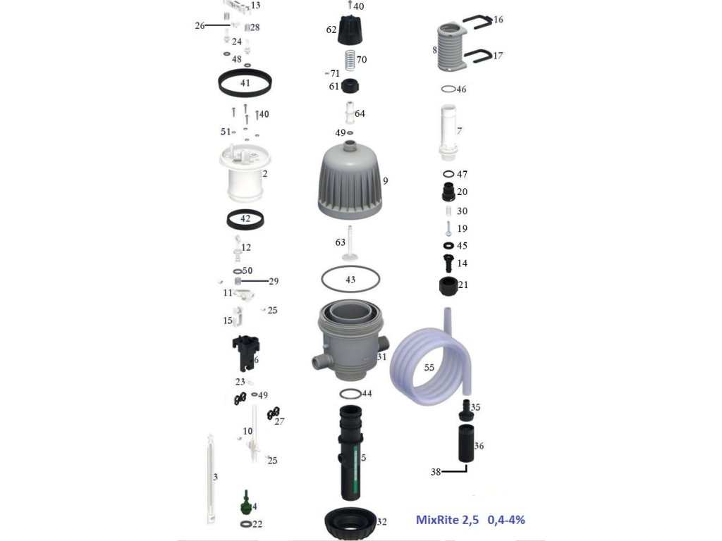 Poznámka: Oproti medikátorům Dosatron jsou u medikátorů Mixrite cenově dostupnější náhr. díly a jejich jednodušší výměna.
