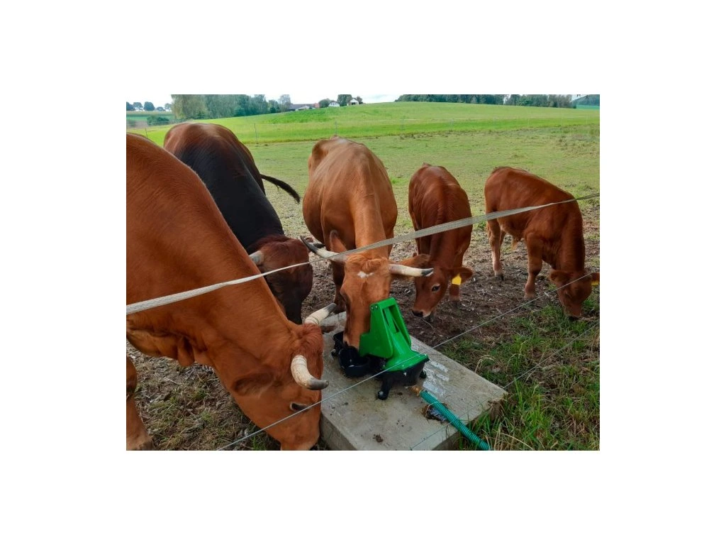 Dvoučinná pastevní pumpa P100 DUO s napájecí miskou pro mláďata je vhodná pro dobytek, koně, telata nebo hříbata. Pastevní pumpa s dvojitým zdvihem, vhodná pro stádo 15 – 20 zvířat. Napájecí miska pro mláďata umožňuje napájet krávu a tele současně.
