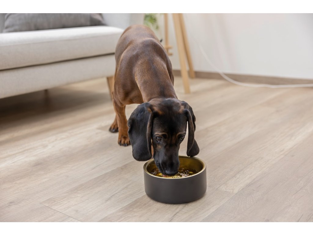- protiskluzové dno – miska drží pevně na místě, ať už krmí psa nebo kočku