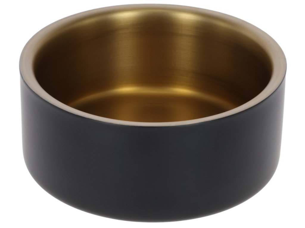 Nerezová miska na vodu nebo krmivo, protiskluzová, černá/zlatá, 900 ml