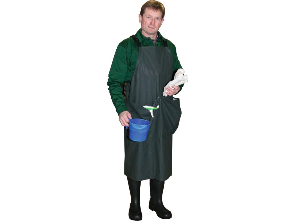 Zástěra na dojení Premium 125 x 118 cm, zelená s kapsami. Velmi robustní profesionální zástěra na dojení určená především k práci v dojírně a mléčných provozech.
