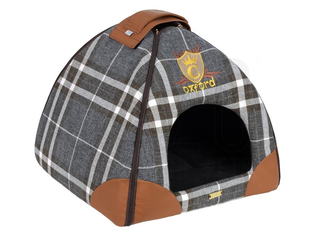 Stylová kukaň pro psa a kočku CAZO řady OXFORD je malá látková bouda v moderním designu pro malá plemena psů, či koček. Pelíšek pro psa poskytuje zvířeti pocit bezpečí, skvěle se hodí jako doplněk do interieru a lze jej využít i jako pelíšek na cesty. Boudička pro psa je pomocí 4 zipů snadno a rychle složitelná a přípravená na cesty.