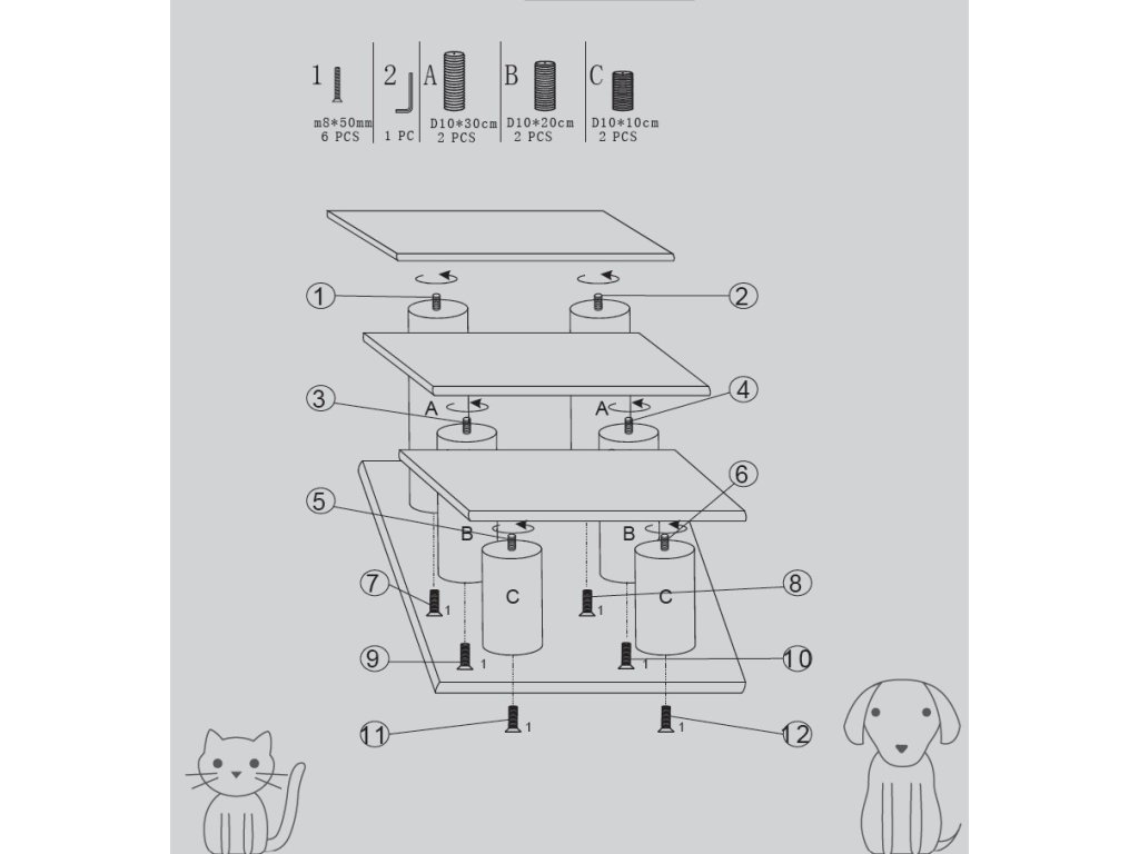 Schůdky vhodné zejména pro stará nebo nemocná zvířata, aby jim ulehčily slézání a vylézání na oblíbený gauč či křeslo. Poslouží také jako atypické škrabadlo a odpočivadlo pro kočky. Schůdky se skládají z podesty, šesti sloupků a tří nášlapů, vše je potaženo béžovou tkaninou schlupem.