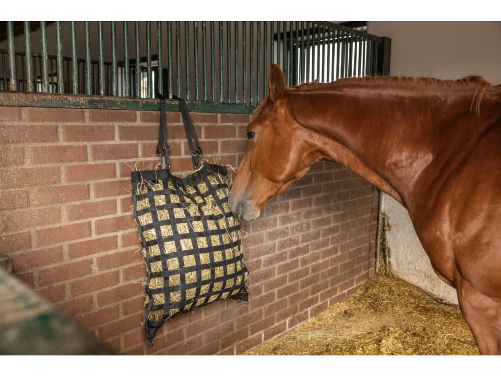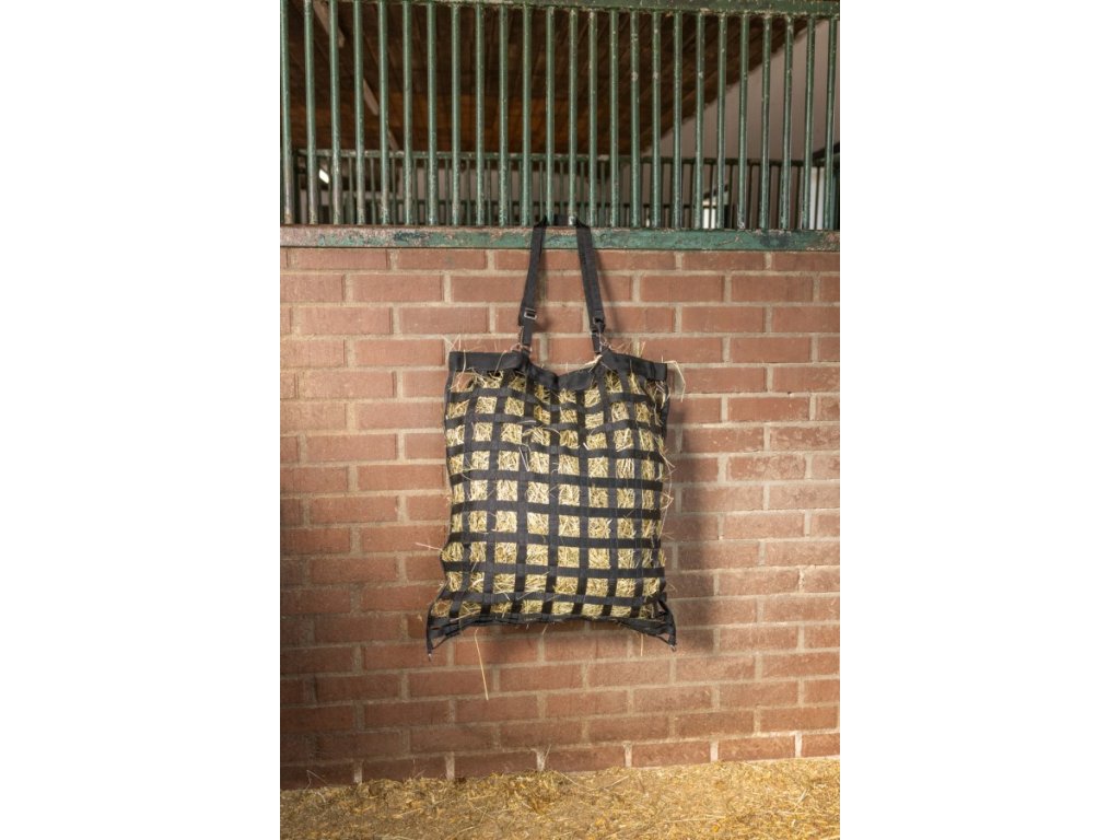 Hay Bag je praktický vak na seno, který podporuje pomalý a dobře stravitelný příjem objemového krmiva a zároveň brání tomu, aby kůň seno rozhazoval po zemi. Díky tomu se snižují ztráty krmiva a prostředí ve stáji i při přepravě zůstává čistší.
