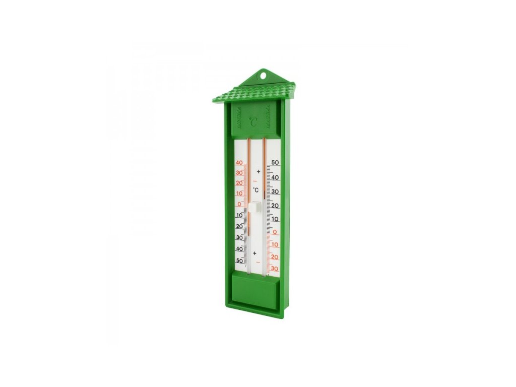 Teploměr s minimální a maximální teplotou slouží k zaznamenávání minimálních a maximálních teplot za delší dobu a současně zobrazuje aktuální teplotu.