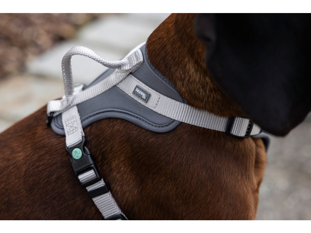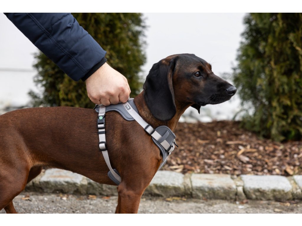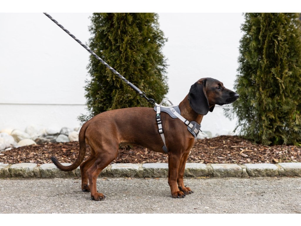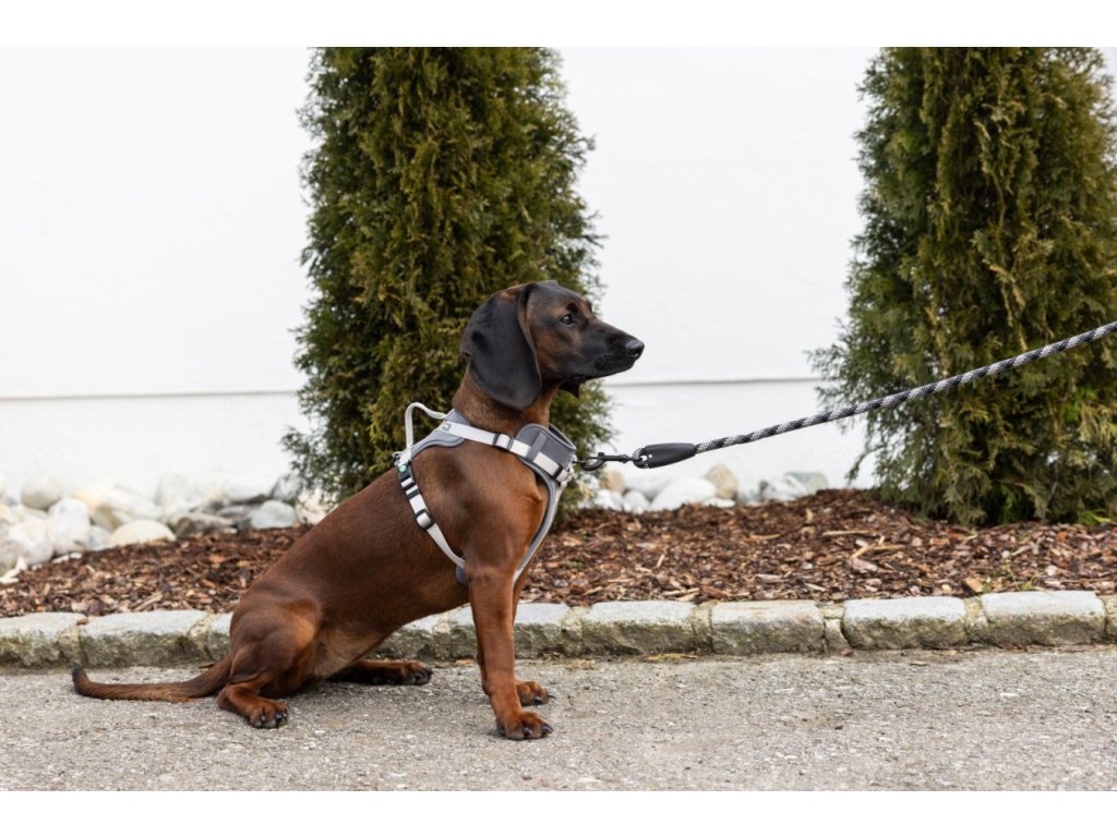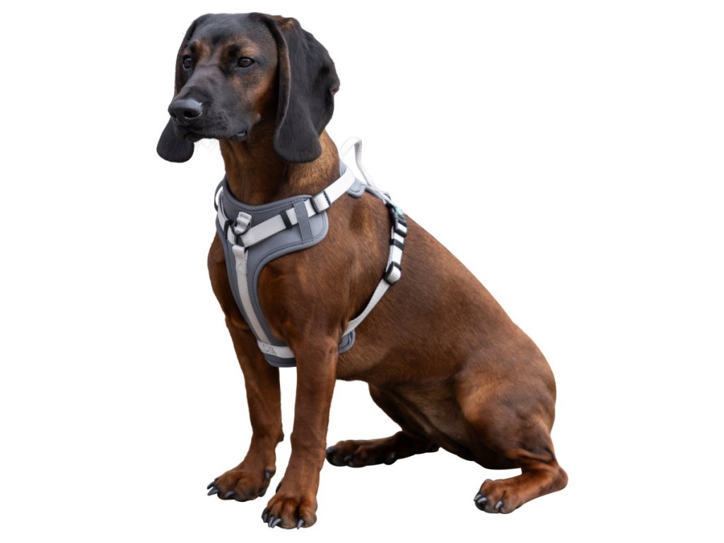 - dva úchyty na vodítko (hrudník + záda) – vhodné pro běžné vedení i výcvik proti tahání