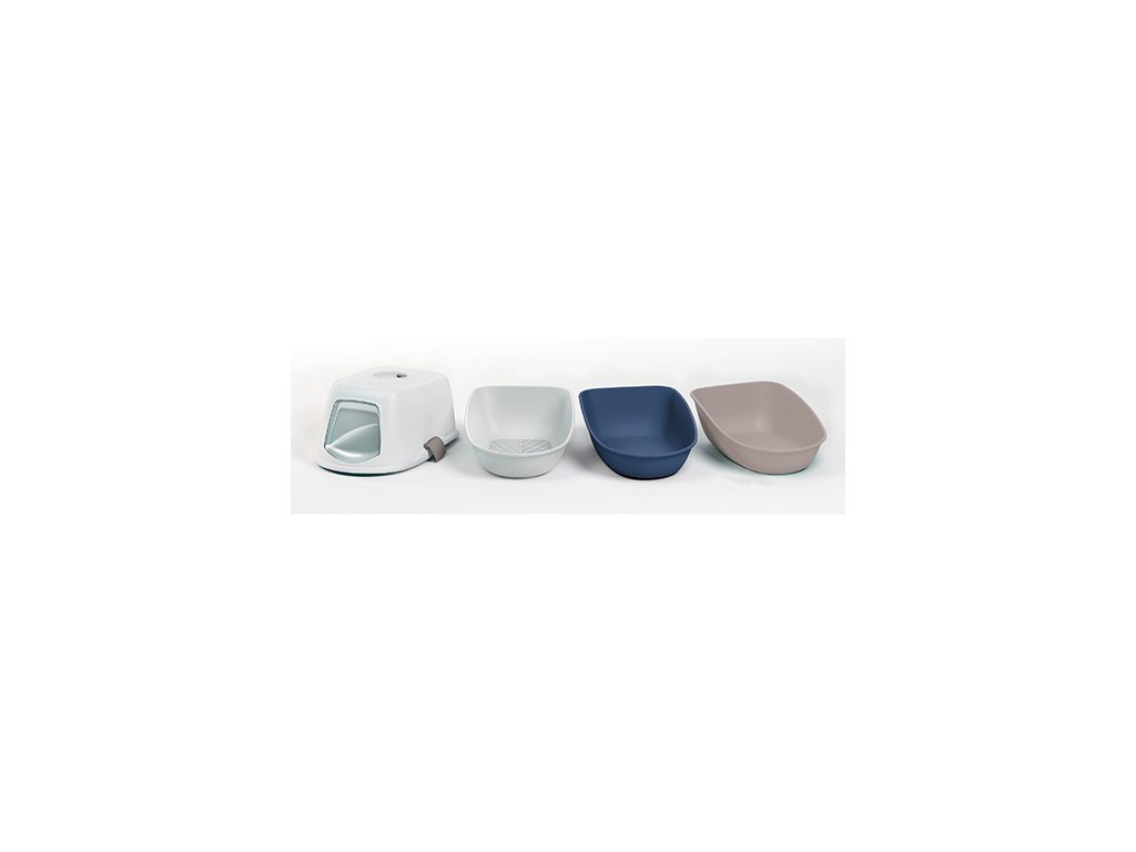 Toaleta pro kočky, krytá - kočičí WC Furba Top Chic - světlá holubí šedá/anglická zelená/bílá