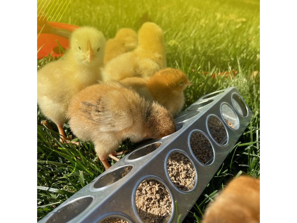 Žlabové krmítko pro křepelky a kuřata, kulaté otvory, 7,5x30 cm